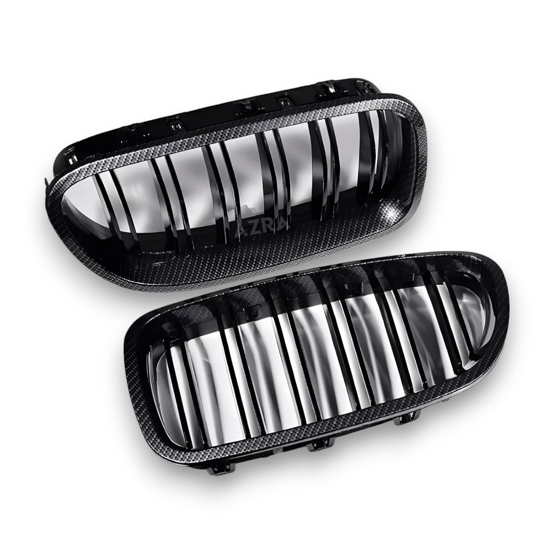 Upgrade your BMW 5 Series F10/F11 with the AZRA Gloss Black/Carbon Print Front Grilles and add a touch of luxury and sportiness to your vehicle.